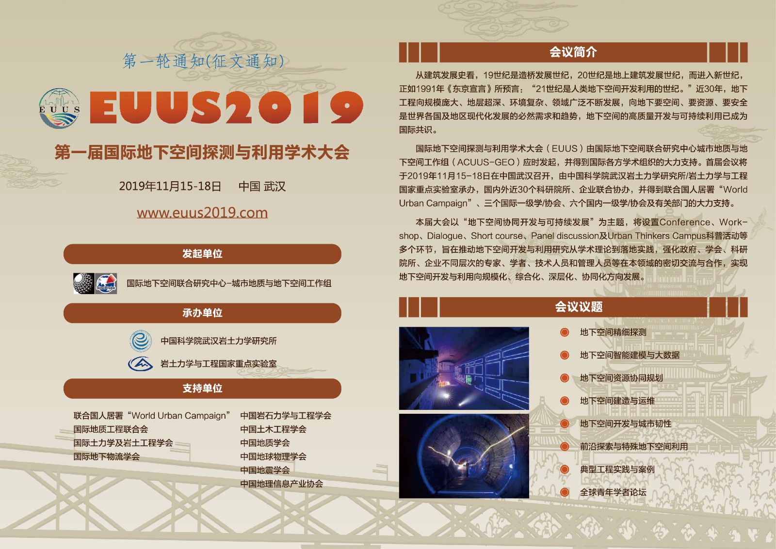 (一号通知)EUUS2019 第一届国际地下空间探测与利用学术大会