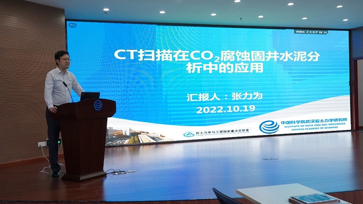 “CT扫描是表征多场耦合条件下岩土体和水泥基材料腐蚀破坏和力学破坏过程的有效手段”。张力为研究员以CO2腐蚀固井水泥试验为例展示了微米CT扫描在分析腐蚀过程中的应用,并对图像处理软件Avizo的使用方法展开详细介绍。