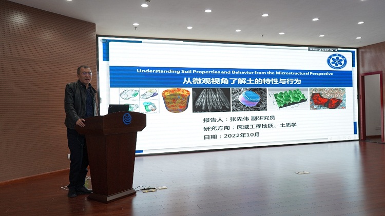 “微观研究,是一种了解土的性质与特性的手段,一个辅助制定研究框架与拓展研究思路的途径”。张先伟副研究员报告主题为从微观层次了解与推测土体宏观行为。以硅藻土为例,通过MIC、SEM 、MIP 、TEM、AFM 等多种微观测试分析得到硅藻引起现场胀缩变形的作用机理。