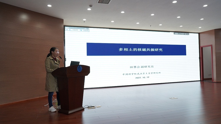 田慧会副研究员介绍了《多相土的核磁共振研究》,从理论背景出发,利用核磁共振技术研究了土体中孔隙水的分布,提出了快速测定土体孔径分布与吸附水含量的方法,并基于NMR理论研究了土体中孔隙水的微观动力学参数。