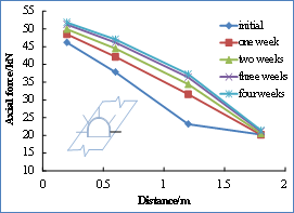 为揭示急倾斜地层巷道锚固的应力传递机理,中国科学院武汉岩土力学研究所施工过程力学组提出了针对急倾斜地层巷道支护的现场锚固试验技术,并进行了长期的自动化数据监测工作。通过试验研究,揭示了锚杆杆长方向与岩层层面的交角对锚杆轴应力分布的影响规律,提出了急倾斜地层巷道中锚杆轴力的变化规律及突变点和在急倾斜地层中开挖巷道的关键锚固支护措施。该试验技术在国投新集三矿中得到了成功应用。