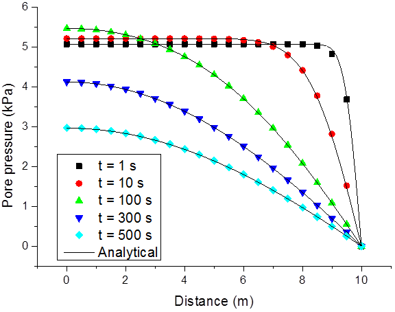 图2. Terzaghi固结算例:第一个时间步孔隙压力的竖向分布