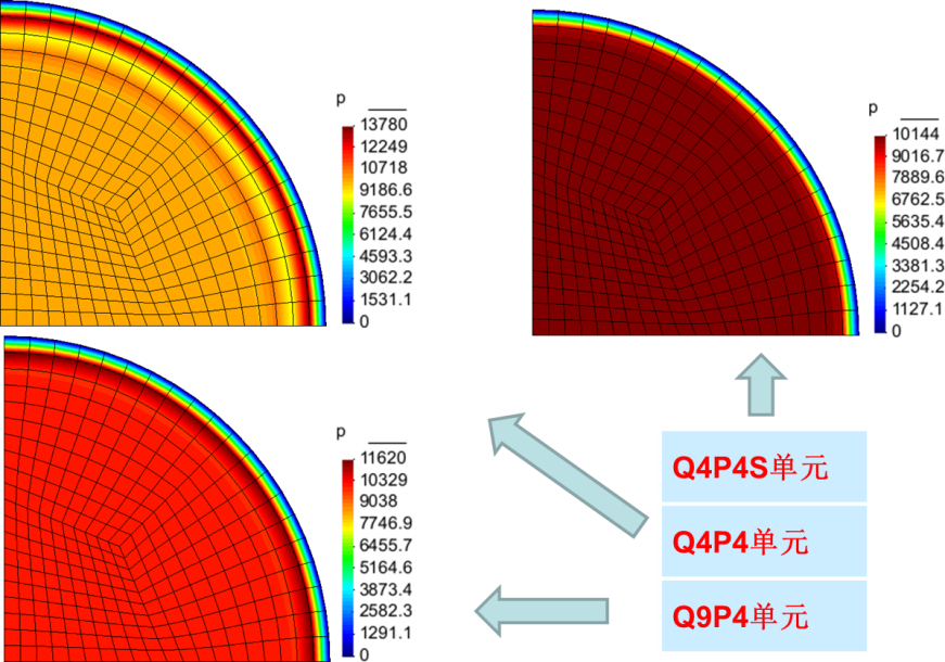 图1. 不稳定的Q4P4单元和稳定的Q9P4单元