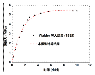 虽然本模型采用了一些简单的假设,也没有给出某些参数的精确表达式,但它为后续的研究提供了初步的理论框架。在此理论框架下,可以进一步开展大量的研究工作,如:确定有效体积膨胀系数的精确表达式,冰的流变和热融性质对冻胀力的影响,裂缝扩展后冻胀压力的变化等等。