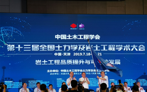 在21日下午举行的大会闭幕式授旗仪式上,我所从第十三届全国土力学及岩土工程学术大会主办方手中接过会旗。此次岩土所派出近30人的代表团赴天津参加此次学术盛会,在会议主题报告、特邀报告、报告主持等环节都有我所科研人员的身影,汪稔研究员连任中国土木工程学会土力学及岩土工程分会第十届理事会副理事长。