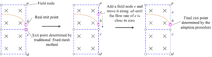 图1 求解渗流自由面时逸出点定位的“自适应节点调整法”
