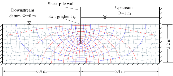 图2 存在板桩墙的地基中的渗流的流线与等势线
