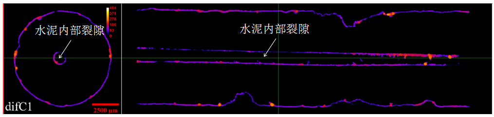 图4 固井水泥与高浓度CO2反应后碳酸钙反应层的分布