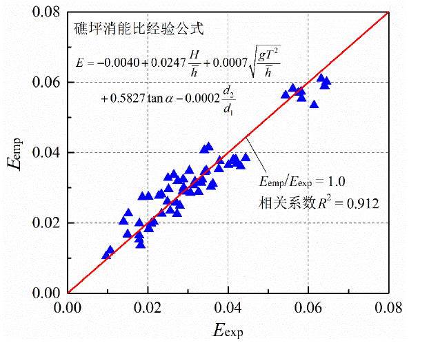 图4 礁坪消能比模型试验与数值计算结果相关性分析