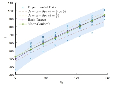 通过经典文献所提供的8组实验数据的验证表明:所提出的强度准则比Mohr-Coulomb准则、Hoek-Brown准则、Drucker-Prager准则和修正Lade-Duncan准则更适合于岩石。该项研究最近在Mechanics of Materials上发表。