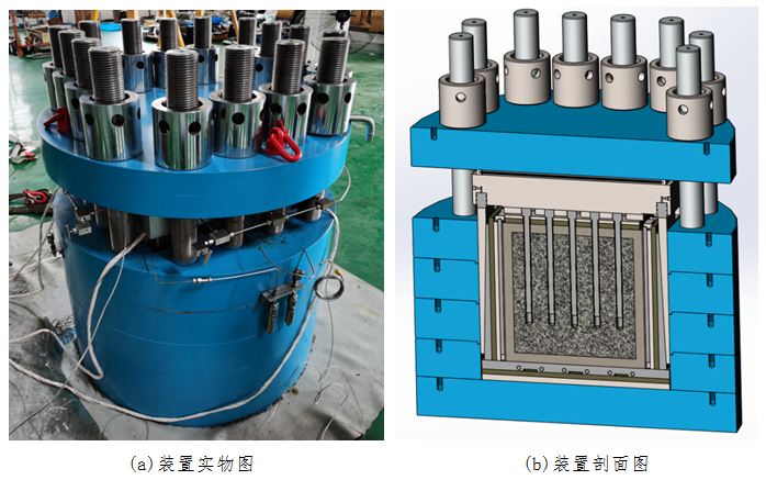 地热是绿色可再生清洁能源,以干热岩为代表的我国深部地热资源潜力巨大、前景广阔。大力开发利用干热岩深部地热资源对优化我国能源结构、助力如期实现“碳达峰、碳中和”庄严承诺具有重大意义。然而干热岩埋藏深、应力高、渗透性低、非均质性强、场地依赖性大,在热储建造、诱发地震、高效取热等方面还面临一系列难题,亟待深入认识关键机理、突破核心技术。模型试验是介于材料试验和现场工程试验之间的一种试验手段,一方面比材料试验的试样尺寸更大,可更接近实际工程条件,能获取更多结构性信息和规律,另一方面,通常又比现场原位试验的成本相对更低。开展大尺寸模型试验是干热岩等深部岩体力学的发展趋势。然而,岩体力学设备的投资几乎与吨位也就是试样尺寸的平方成正比,因此如何低成本实现大尺寸模型试验系统具有重要意义。