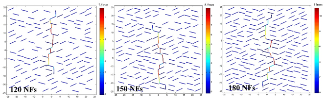 图4不同天然裂缝分布密度下的裂缝开度云图(单位:mm)