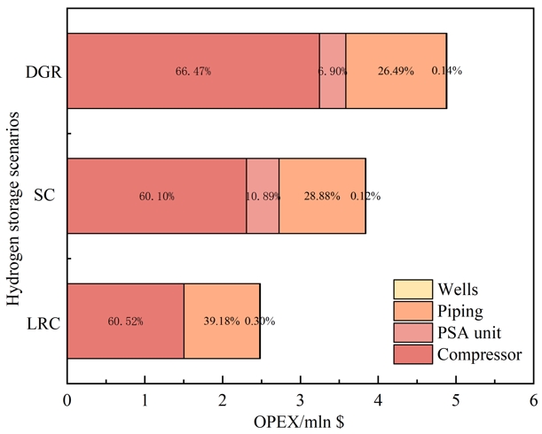 图3 存储107kg H2各储氢场景下运维成本(OPEX)组成