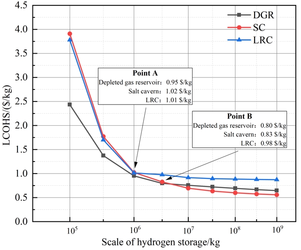 氢能是未来全球极具发展潜力的清洁能源,不仅能平抑太阳能和风能等新能源的波动性与间歇性,还能作为大规模储能的载体,已成为国际能源领域的研究热点。储氢是连接氢能上下游产业的重要枢纽,缺乏大规模储氢技术是制约氢能产业高质量发展的瓶颈。小规模和中等规模的氢存储难以满足区域能源调峰、国家战略储备及能源结构转型的需求。盐穴、枯竭气藏和衬砌硐室等地下储氢方式,被视为实现大规模储氢的优良解决方案,已成为国内外储氢领域的研究热点。然而,面向工程决策的系统性经济评估仍相对薄弱,缺乏在统一分析框架下针对不同储氢方案及关键成本影响因素的研究,这些问题限制了技术成果的工程化推广,亟需开展深入研究以支撑地质储氢基础设施的建设与布局。