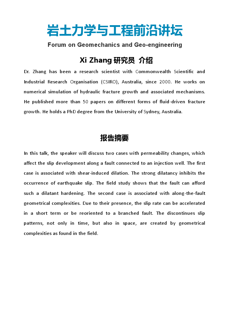 岩土力学与工程前沿讲坛—A geomechanics study on injection - induced seismicity
