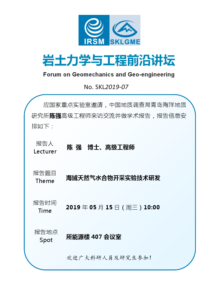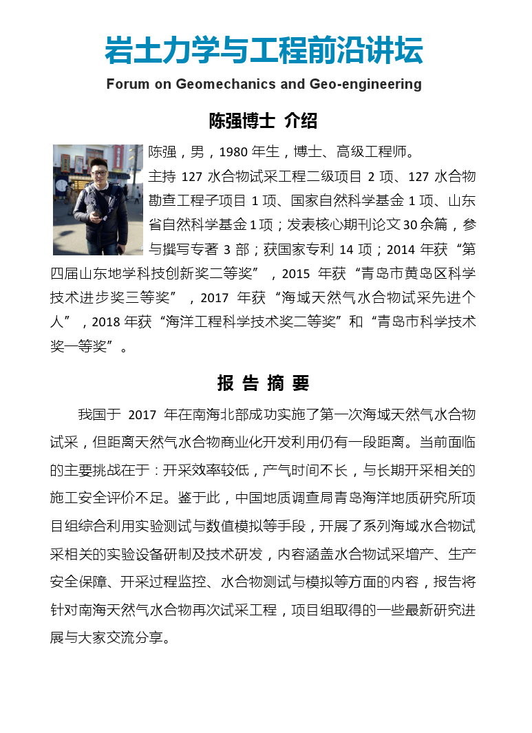 岩土力学与工程前沿讲坛—海域天然气水合物开采实验技术研发