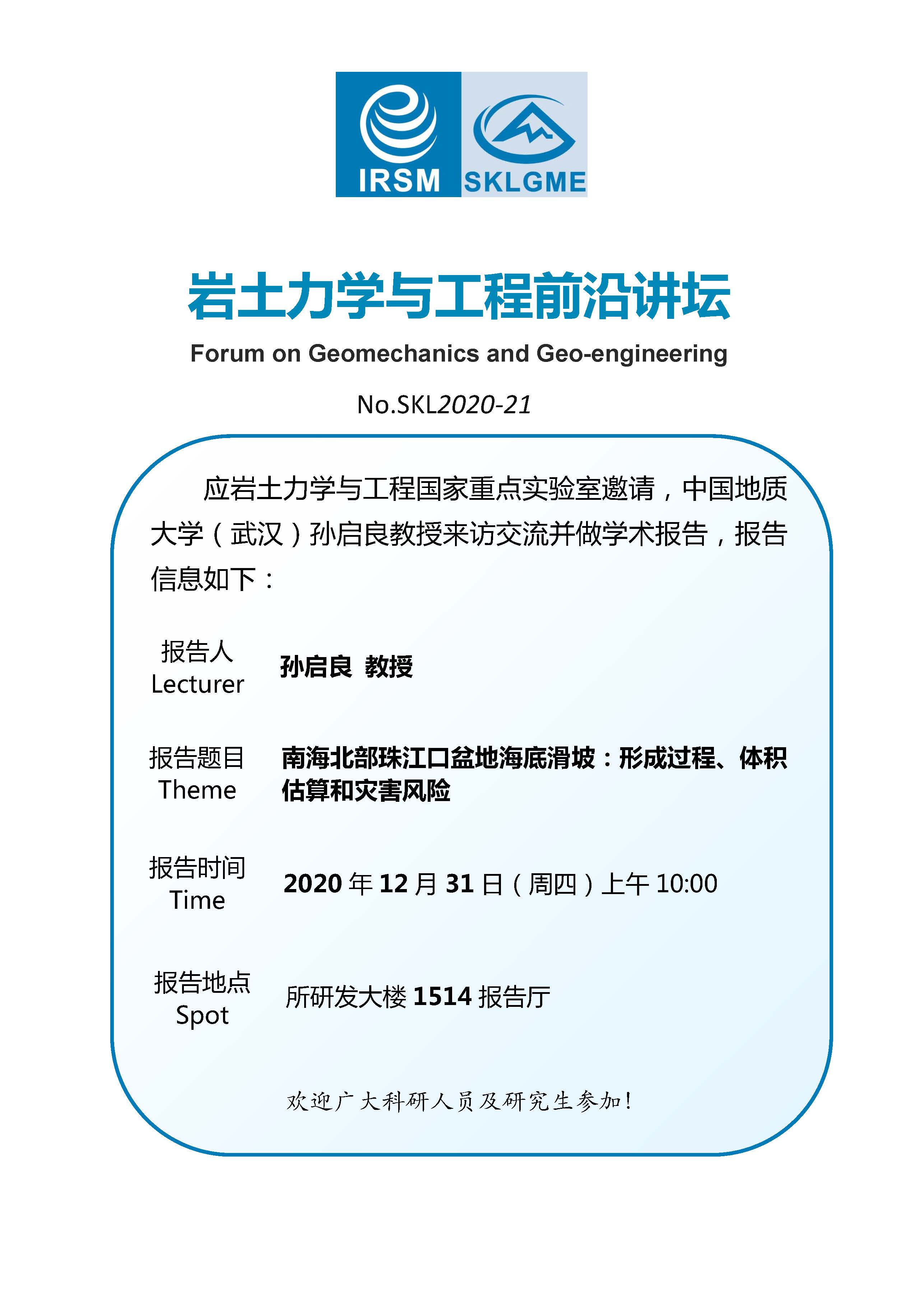 岩土力学与工程前沿讲坛——南海北部珠江口盆地海底滑坡:形成过程、体积估算和灾害风险