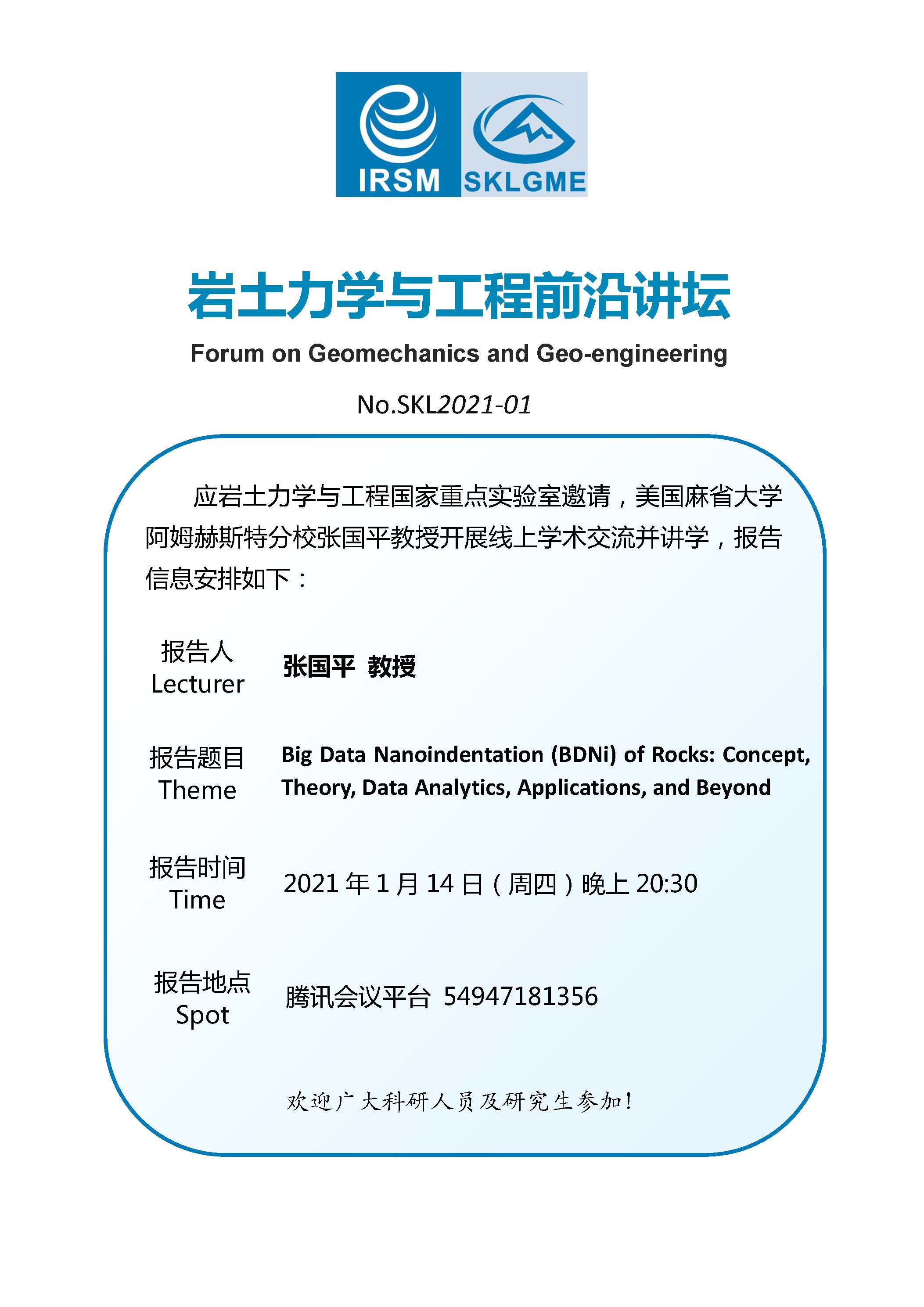 岩土力学与工程前沿讲坛——Big Data Nanoindentation (BDNi) of Rocks:Concept, Theory, Data Analytics, Applications, and Beyond