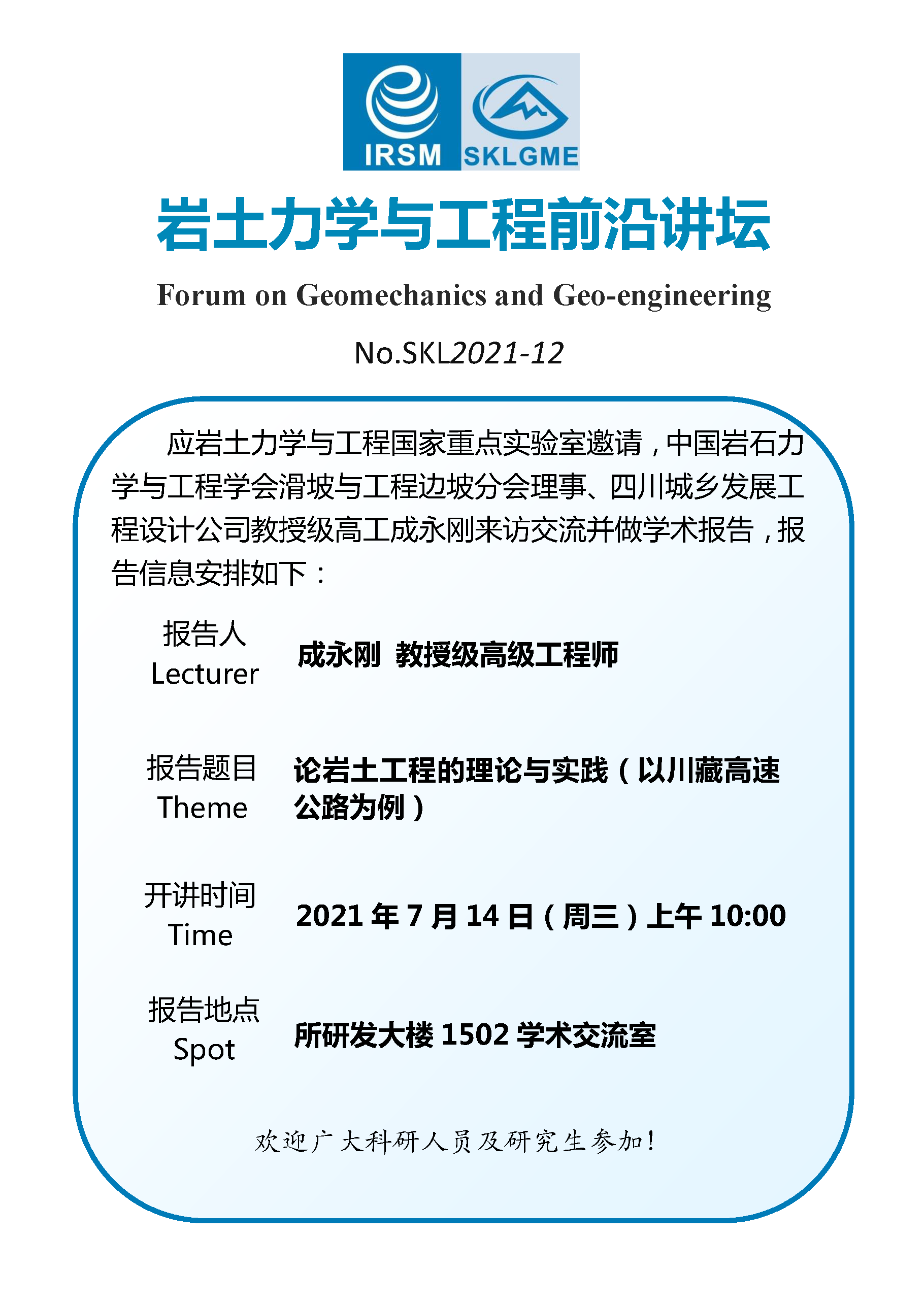 岩土力学与工程前沿讲坛——论岩土工程的理论与实践(以川藏高速公路为例)