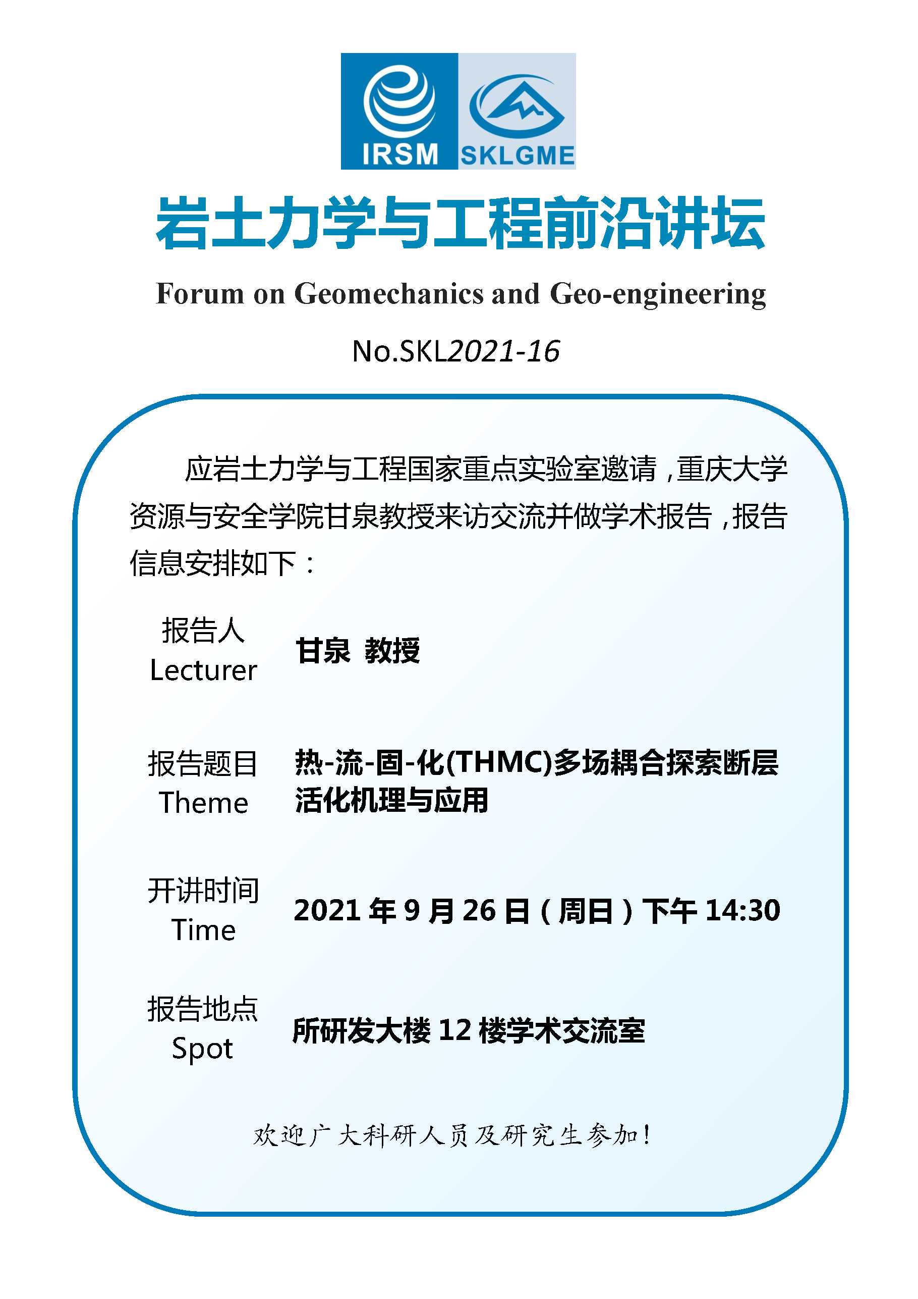 岩土力学与工程前沿讲坛——热-流-固-化(THMC)多场耦合探索断层活化机理与应用
