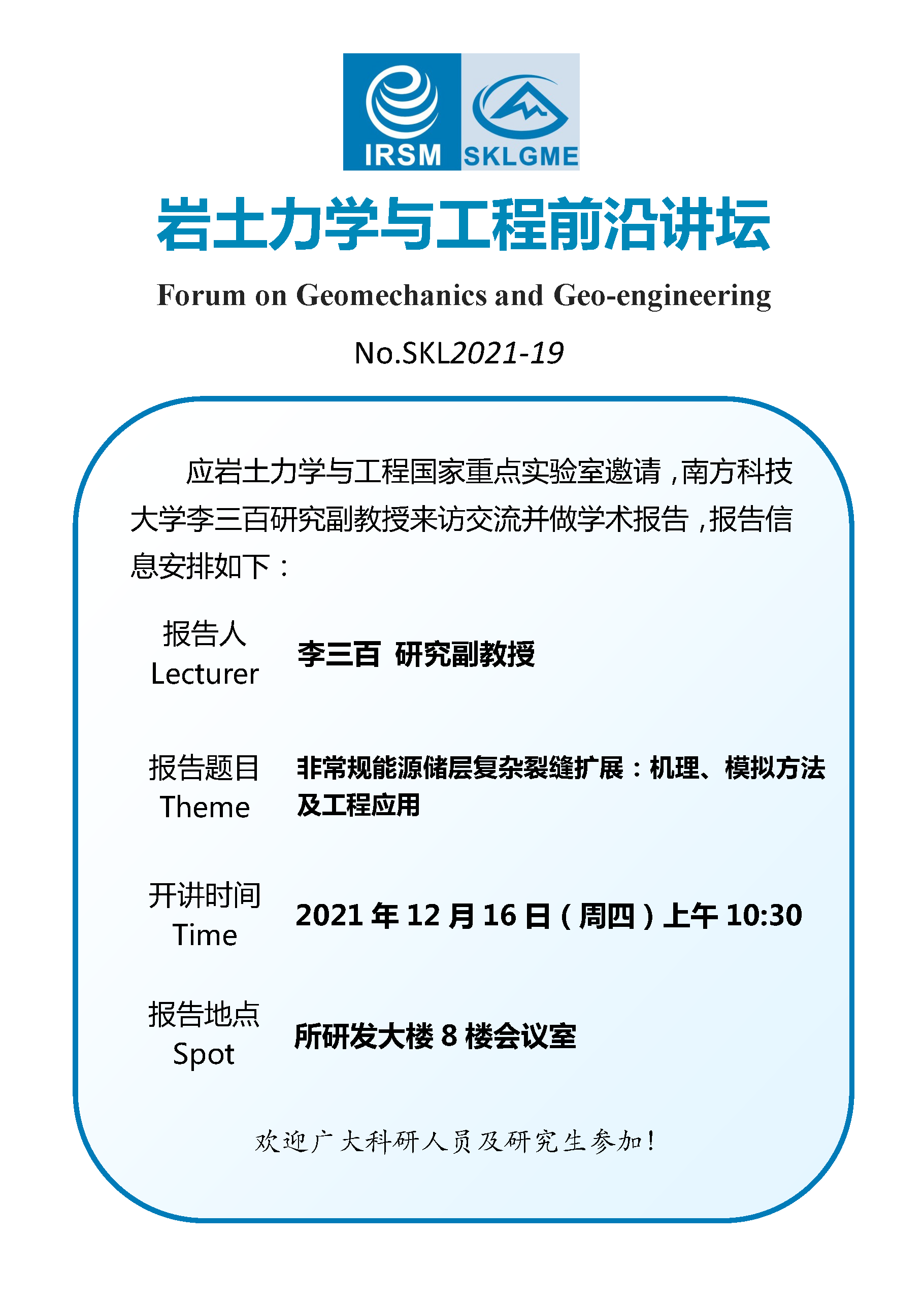 岩土力学与工程前沿讲坛——非常规能源储层复杂裂缝扩展:机理、模拟方法及工程应用