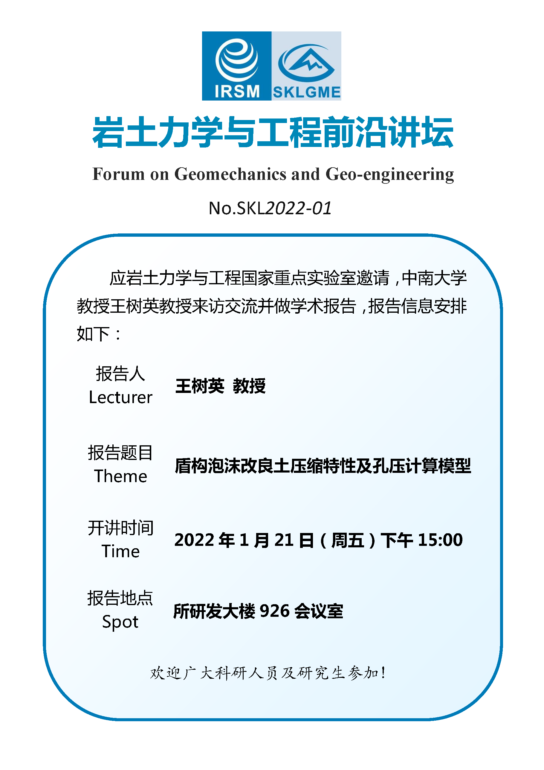 岩土力学与工程前沿讲坛——盾构泡沫改良土压缩特性及孔压计算模型