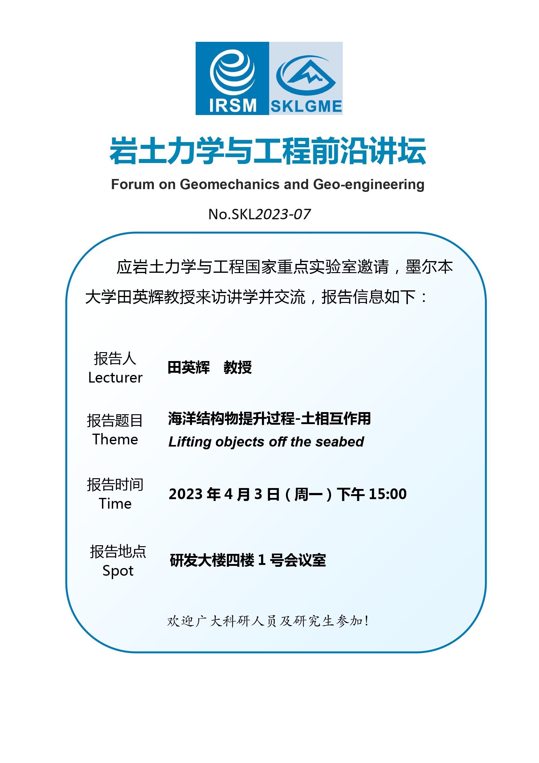 岩土力学与工程前沿讲坛——海洋结构物提升过程-土相互作用 Lifting objects off the seabed