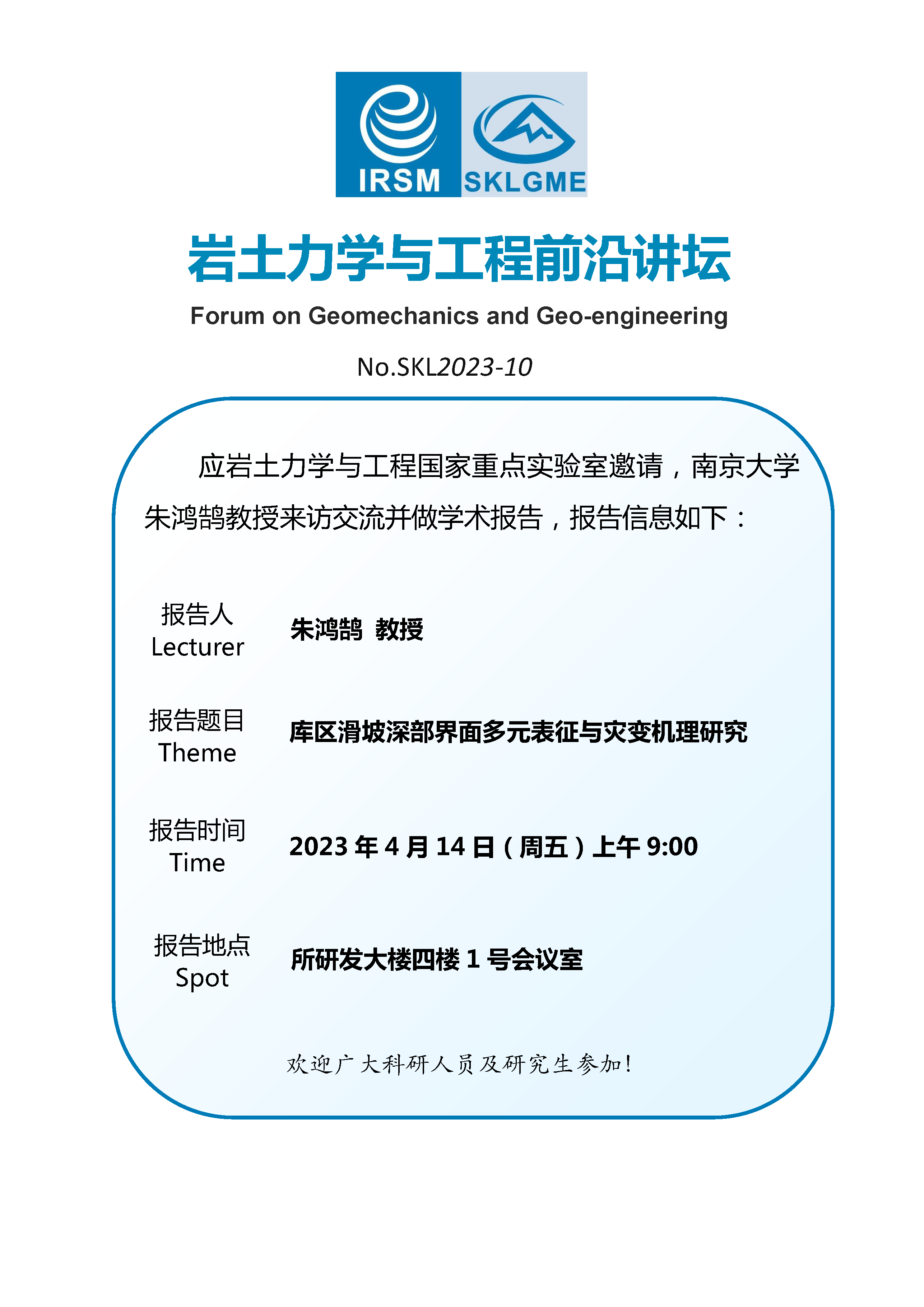 岩土力学与工程前沿讲坛——库区滑坡深部界面多元表征与灾变机理研究