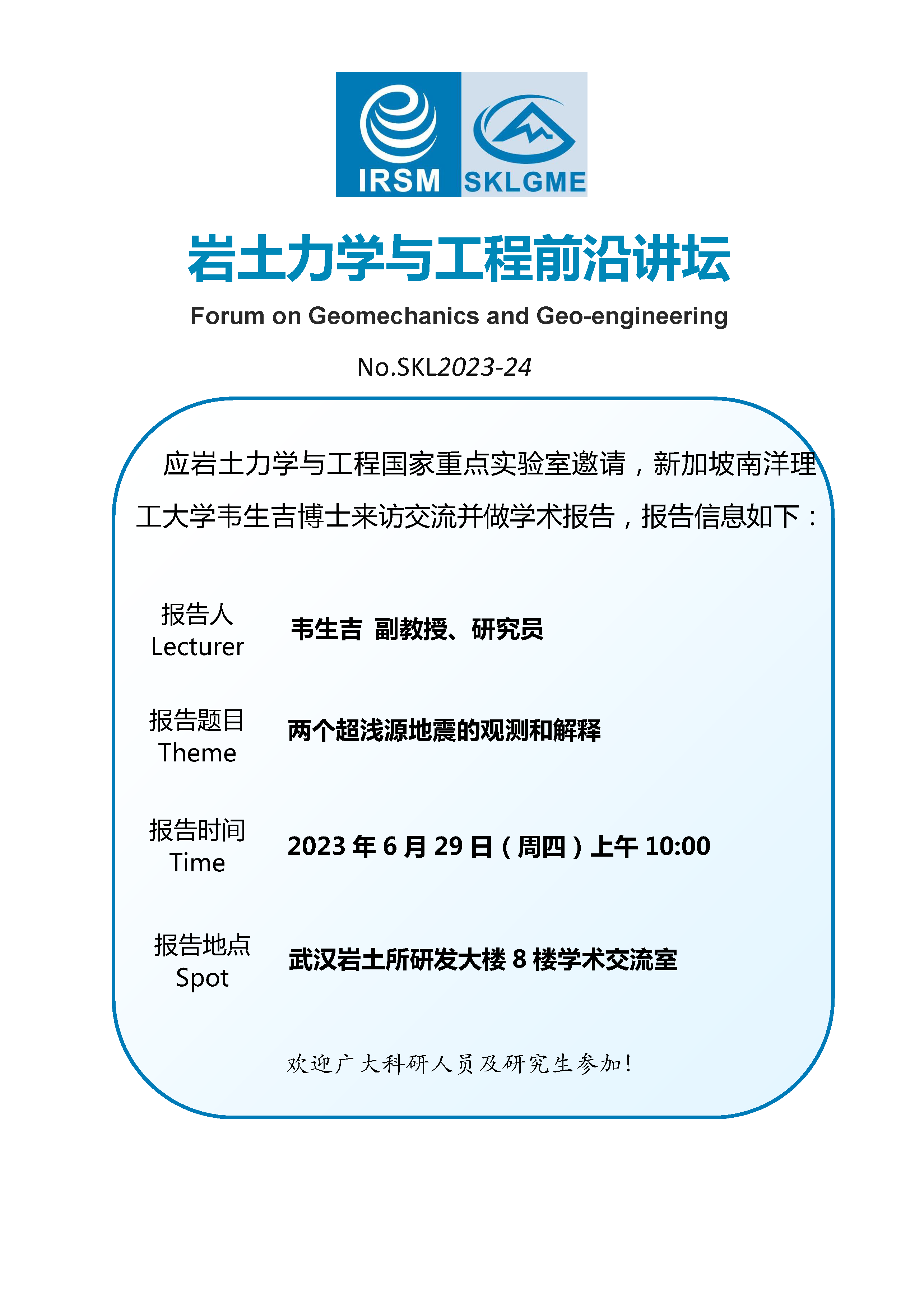 岩土力学与工程前沿讲坛——两个超浅源地震的观测和解释