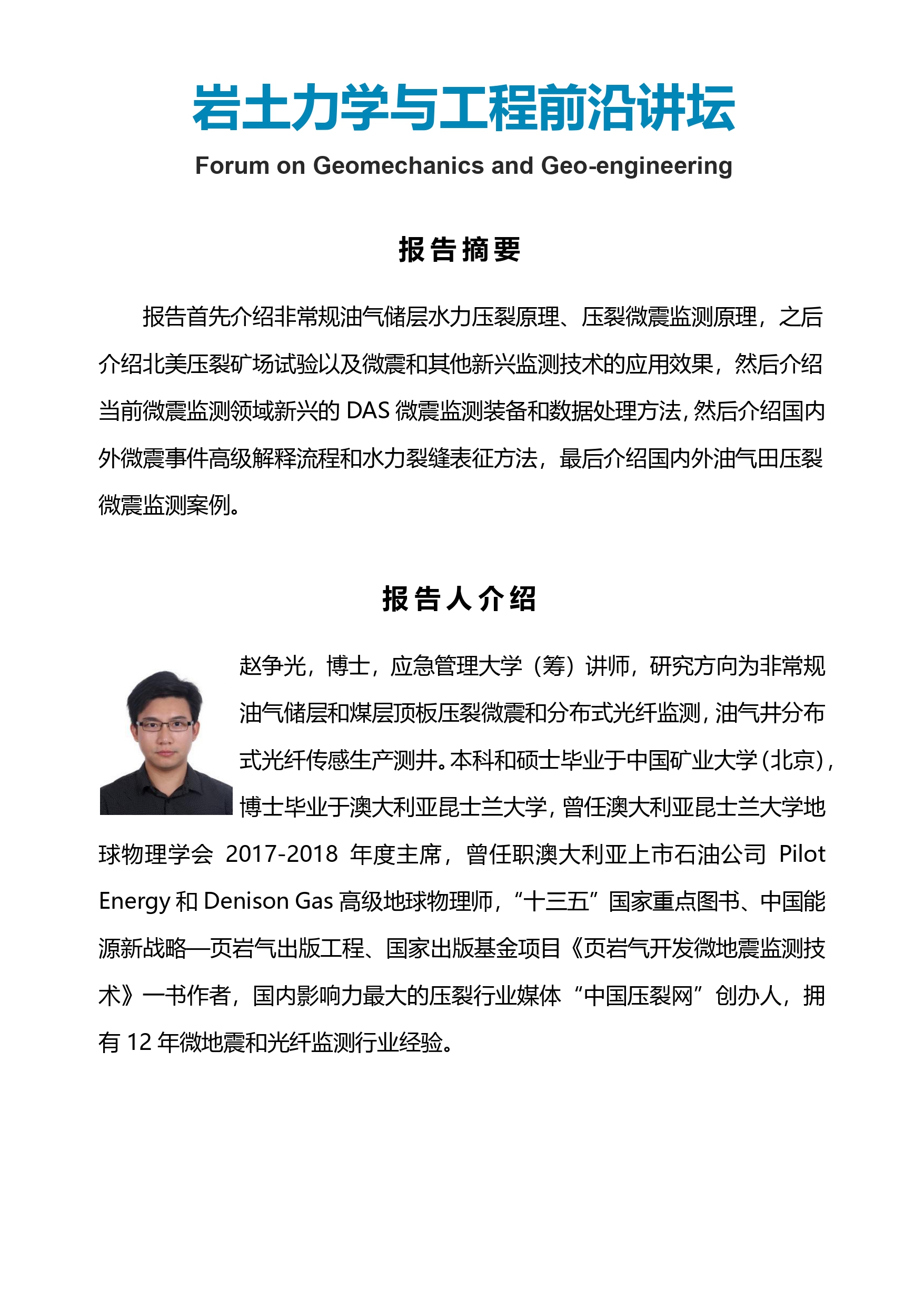 岩土力学与工程前沿讲坛——非常规油气储层压裂微震和分布式光纤监测技术