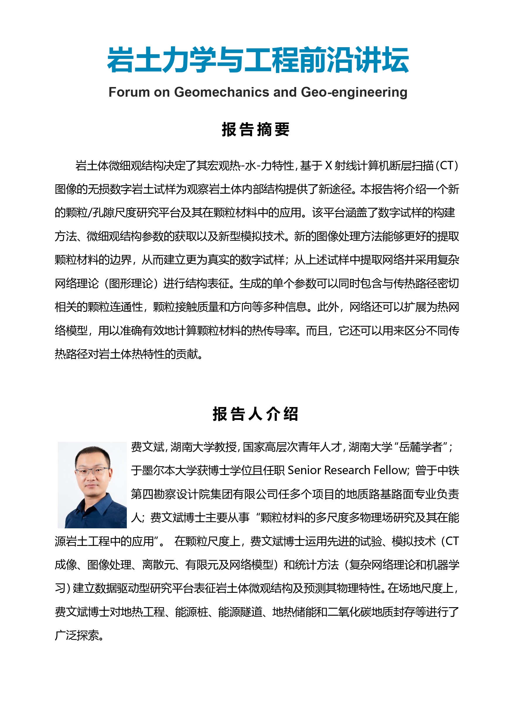 岩土力学与工程前沿讲坛——岩土体结构表征及特性研究新方法
