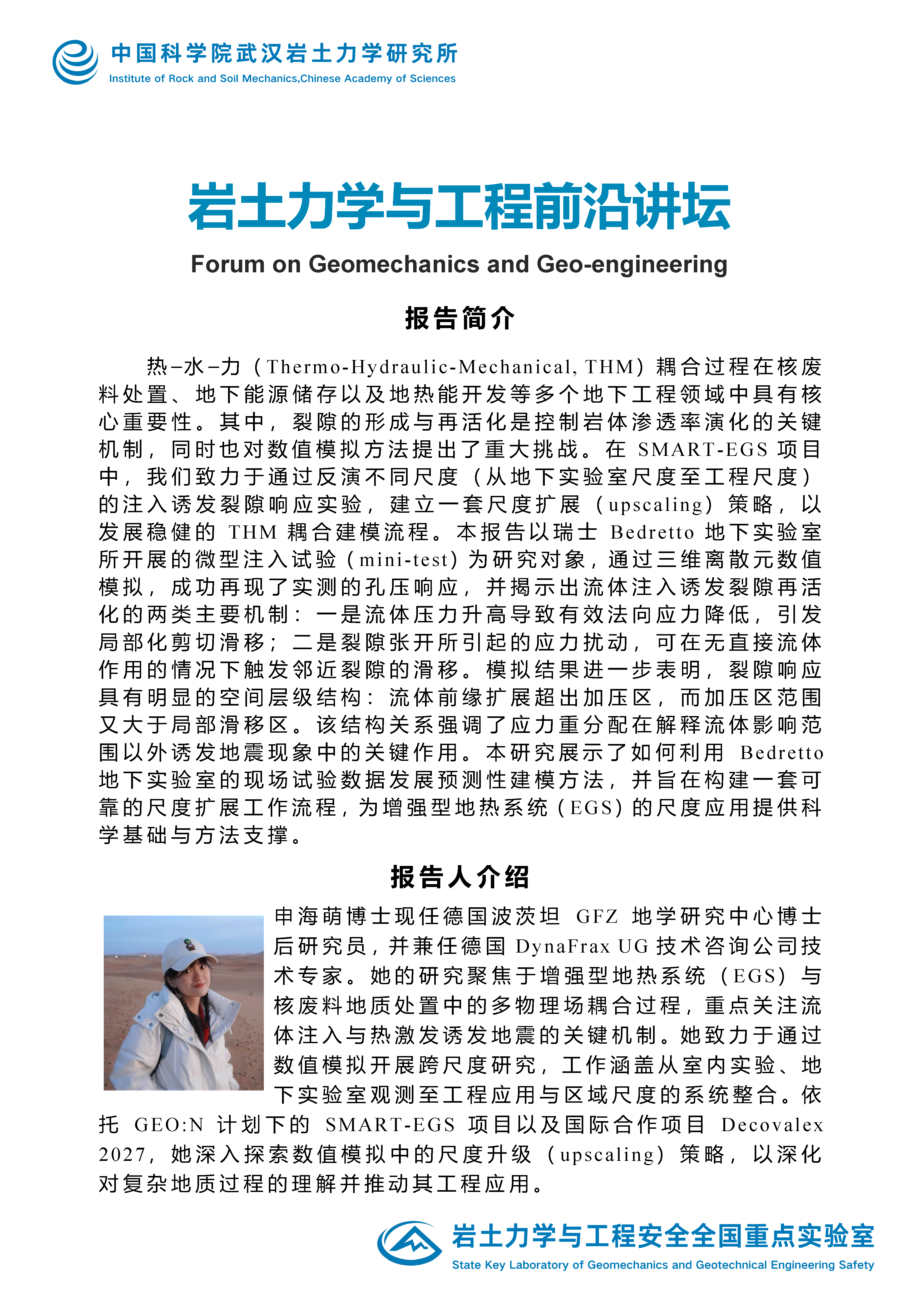 岩土力学与工程前沿讲坛——Reactivation of Natural Fractures in Rotondo Granite Driven by Fluid Pressure and Stress Transfer During Hydraulic Stimulation – A Bedretto Underground Lab Case Study