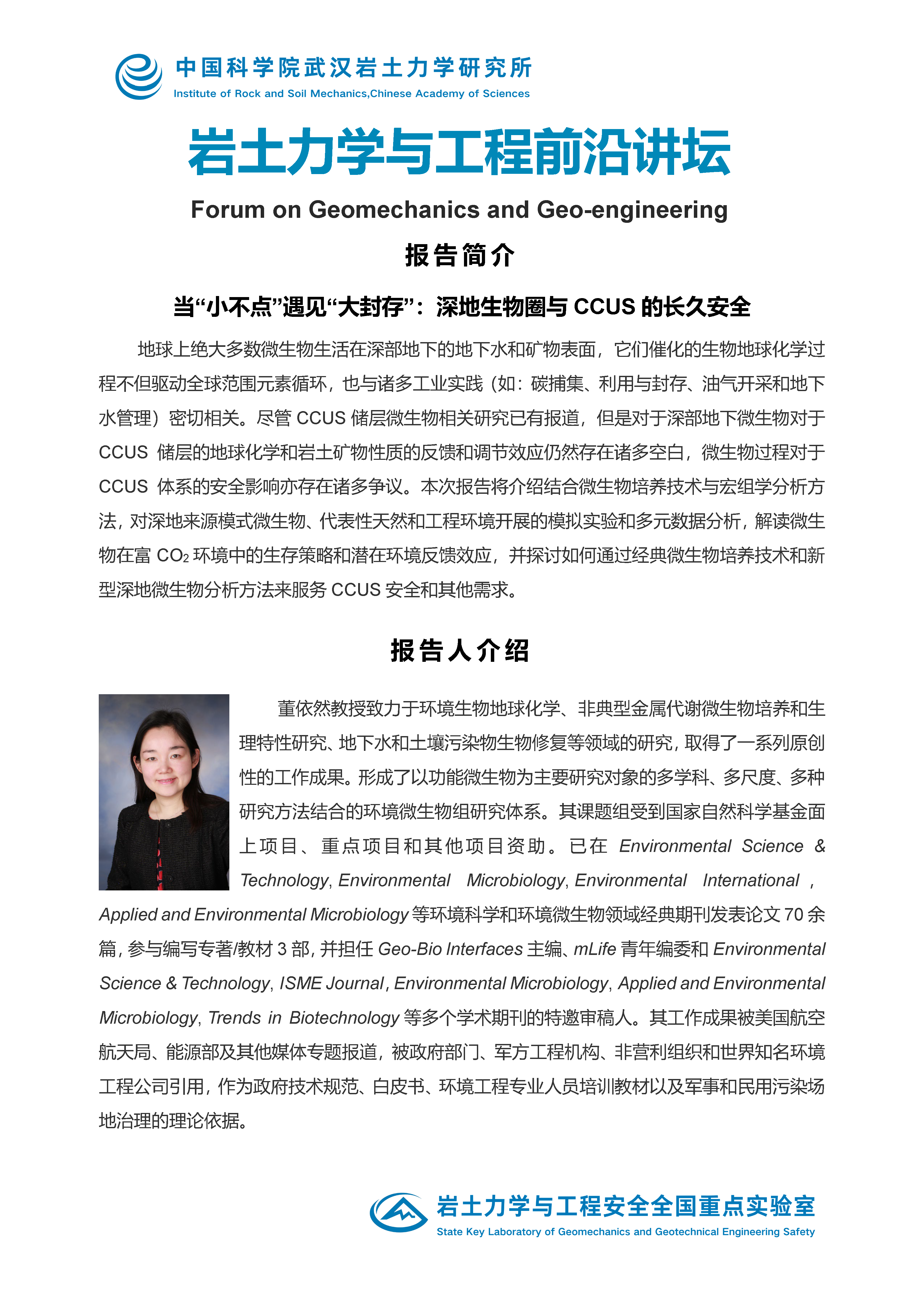 岩土力学与工程前沿讲坛——当“小不点”遇见“大封存”:深地生物圈与 CCUS的长久安全